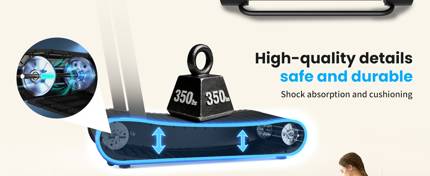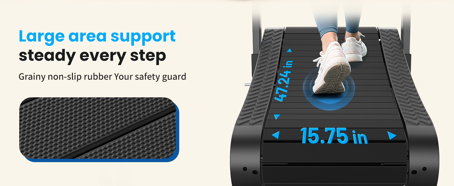 Every detail has been carefully designed for safety and performance. The non-slip rubber tracks with raised bumps ensure a stable grip during runs, while the motorless design minimizes malfunctions and long-term maintenance. With just occasional lubrication, your treadmill will keep running as smoothly as you do.