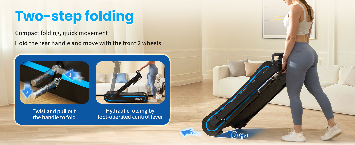 Engineered for flexibility, the ERGOLIFE features foldable armrests that give you two modes in seconds: unfold for guided running with arm support, or fold down for free running and sprint training. When folded, it takes up only 10 ft², making it an excellent choice for apartments, small homes, or office spaces.